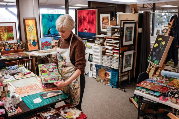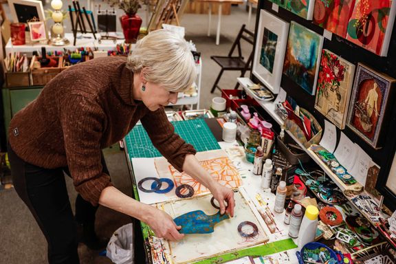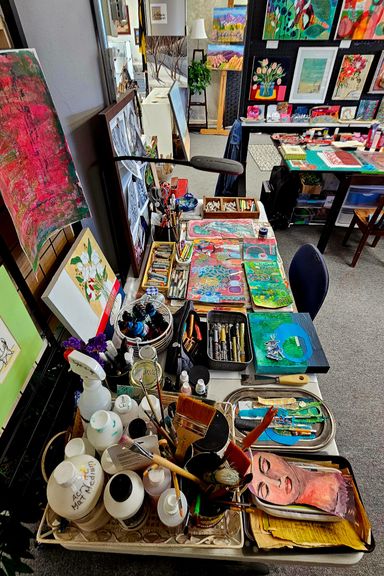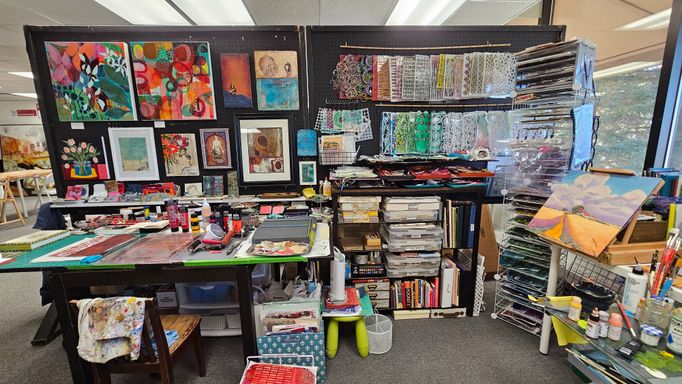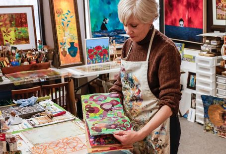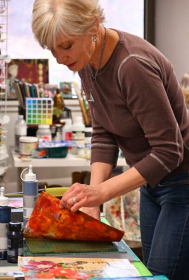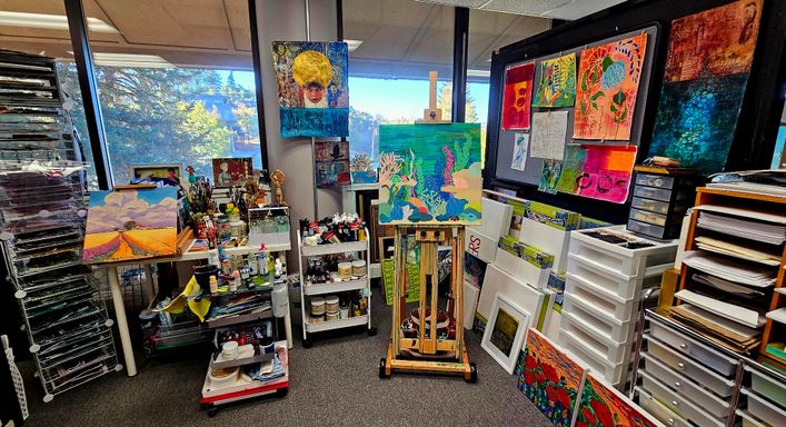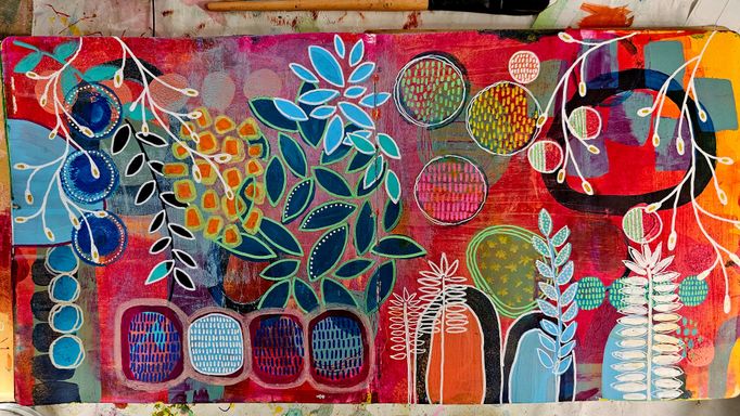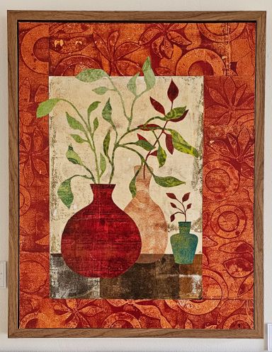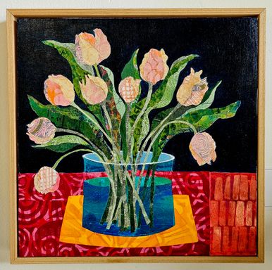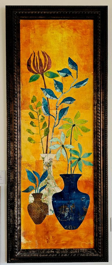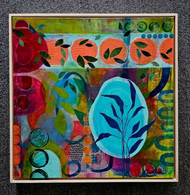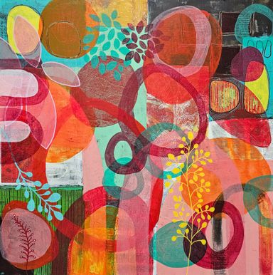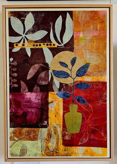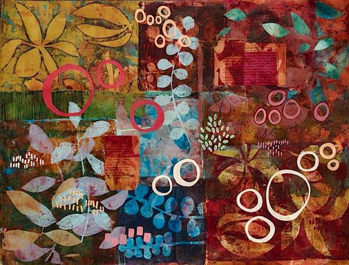 Today my work centers around mixed media collage, painting, and printmaking. I’m especially drawn to the interplay of color, texture, and organic forms that emerge through layered compositions.